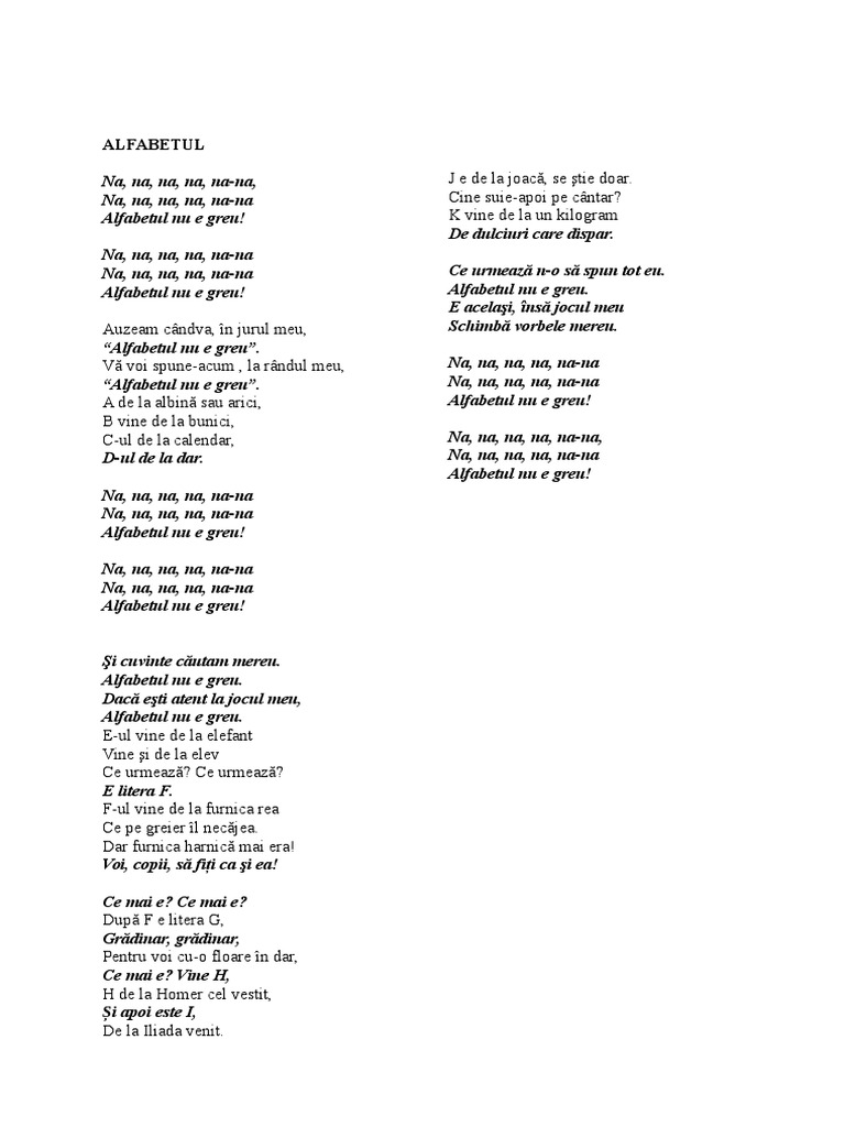 Alfabetul Nu E Greu Versuri