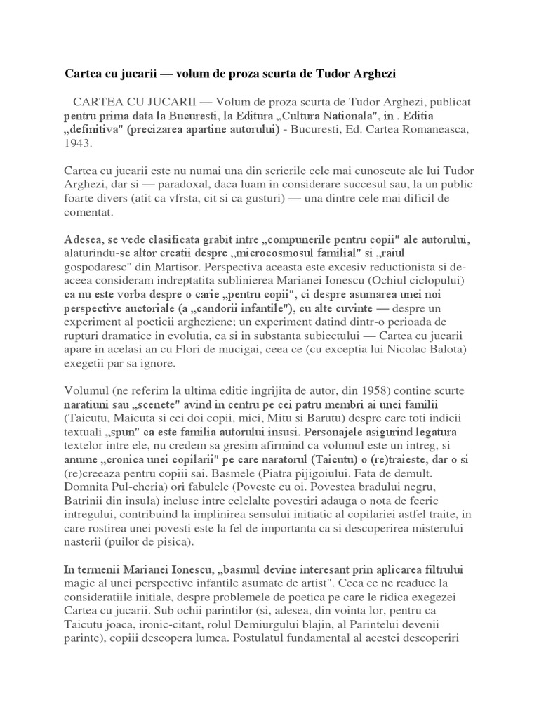 Cartea Cu Jucarii Volum De Proza Scurta De Tudor Arghezi Referat