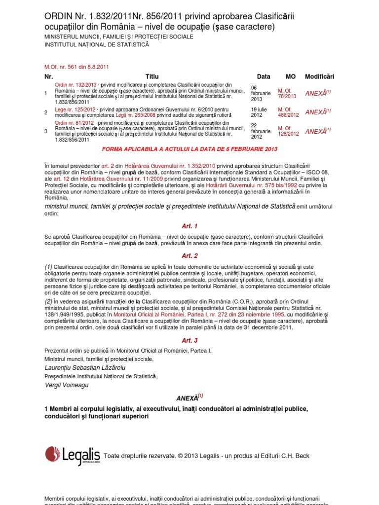 Clasificarea Ocupatiilor Din Romania Cor Actualizat La 6 Februarie 2013