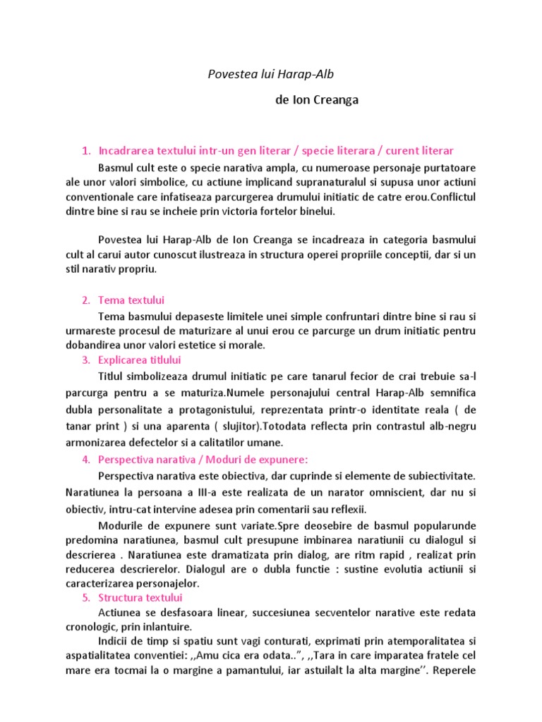 Comentarii Bacalaureat Povestea Lui Harap Alb De Ion Creangă Wattpad