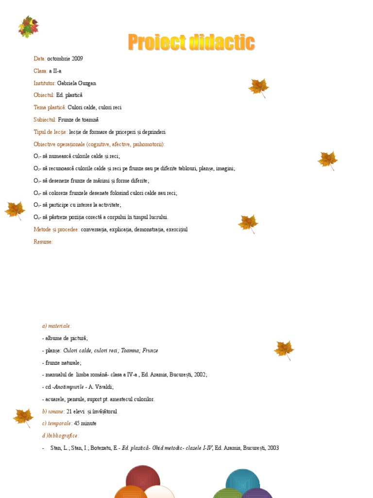 Proiect Didactic Culori Calde Culori Reci Frunze De Toamna Doc