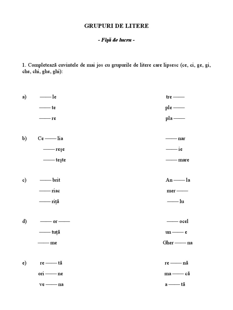 Grupuri De Litere Che Chi Ghe Ghi Ce Ce Ge Gi Stories For Kids Education Homework Sheet