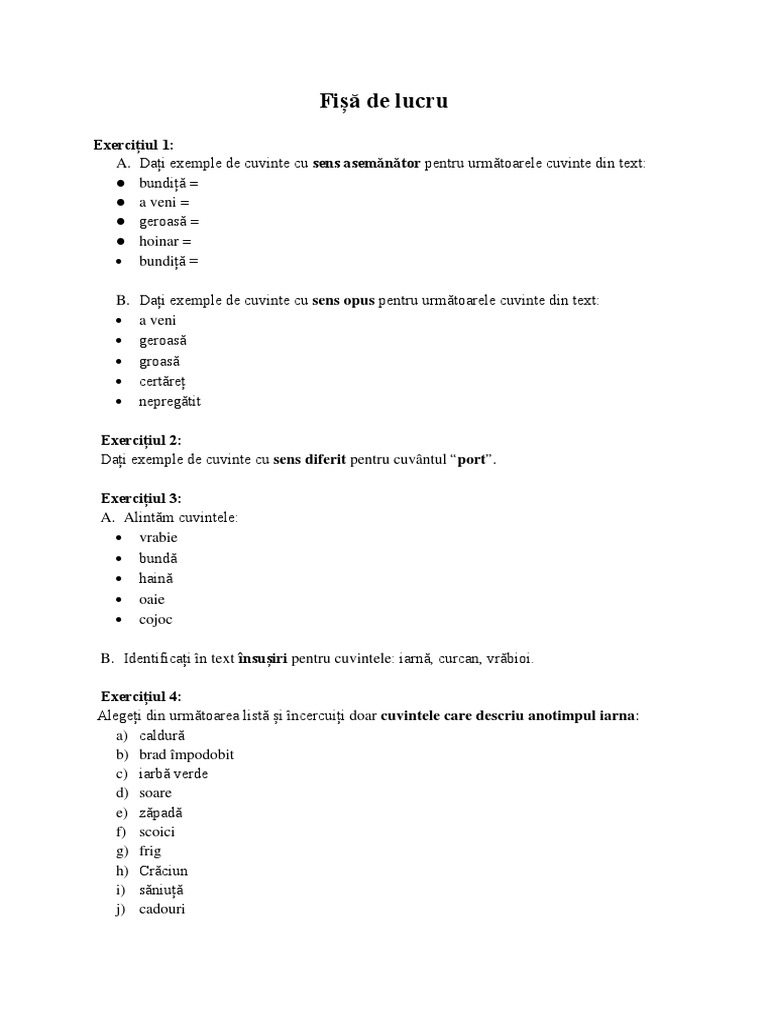 Fișă De Lucru Exercițiul 1