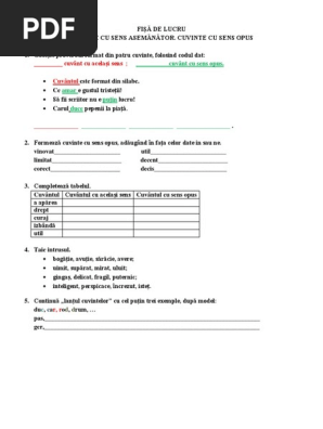 Antonime Clasa 1 Cuvinte Cu Sens Opus Kidibot Bătăliile Cunoașterii
