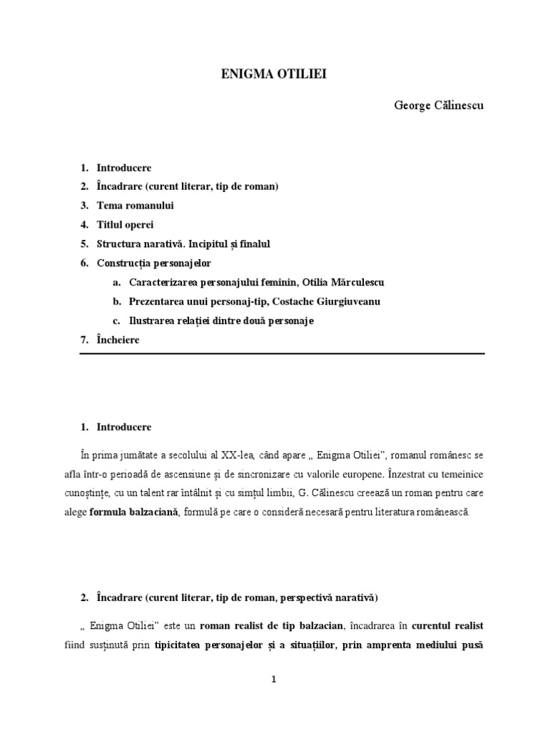 Doc Enigma Otiliei Argumentare Ana Maria Lepădatu Academia Edu