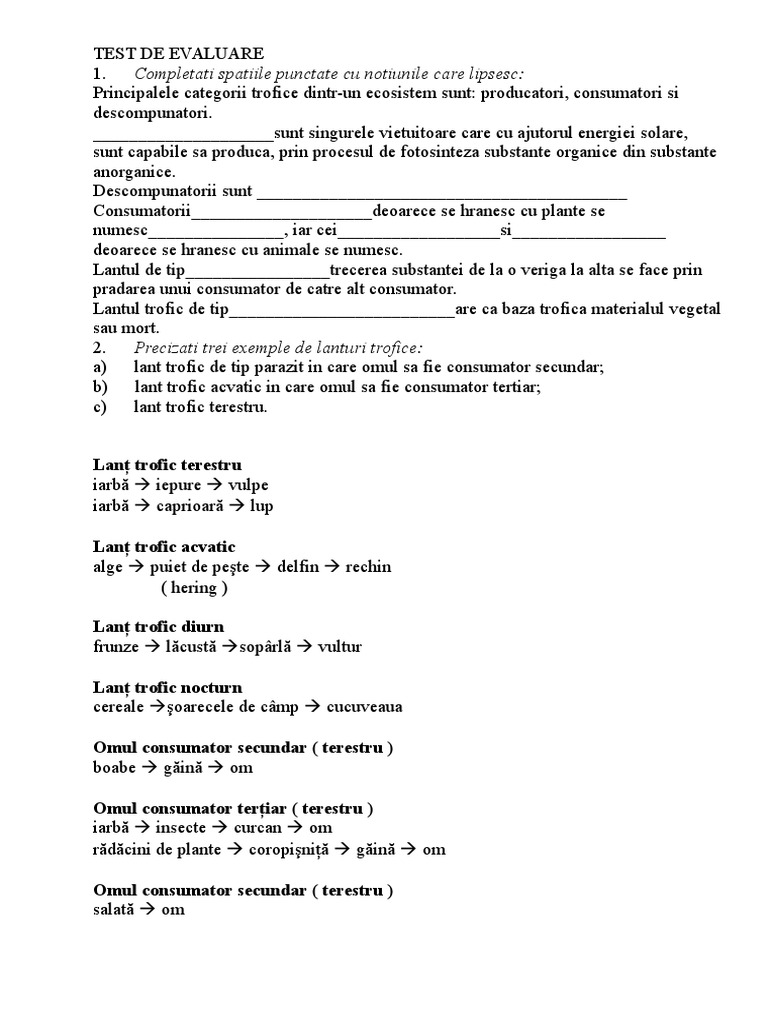 Proiect Didactic Biologie Relatii Trofice In Ecosisteme