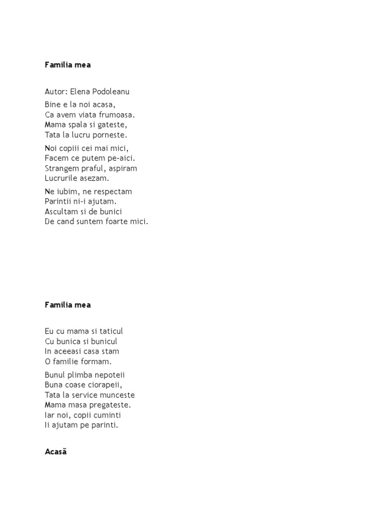 Familia Mea Casa Poezii