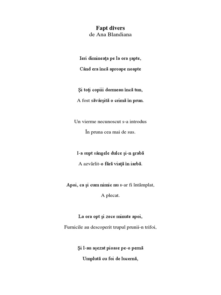 Proiect Opera Epica In Versuri Fapt Divers De Ana Blandiana Pedagogie 276301