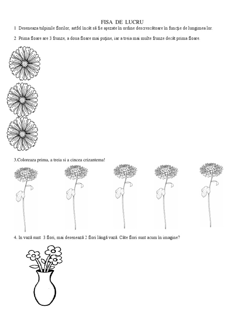 Matematica Si Explorarea Mediului Fisa De Lucru Cu Flori De Toamna Clasa 0 Fise De Lucru Gradini School Lessons Preschool Worksheets Lessons Activities