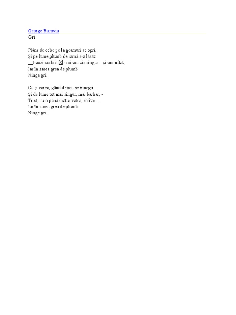 Gri Poezie De George Bacovia Stefania S