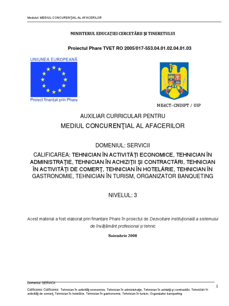 Mediul Concurential Clasa A Xii A Filiera Tehnologica Profil Servicii