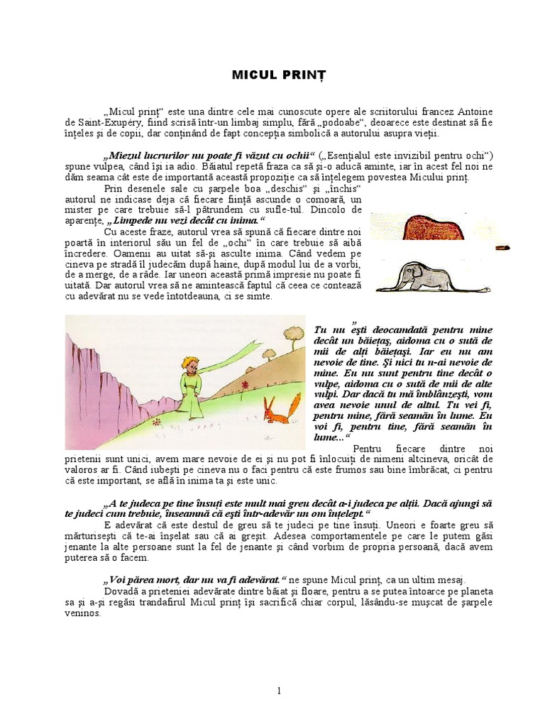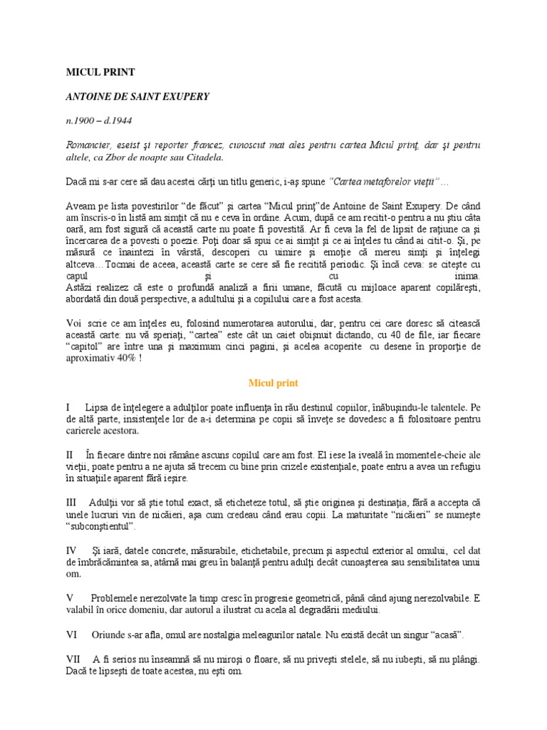Referat Micul Print De Antoine De Saint Exupery Famouswhy Ro