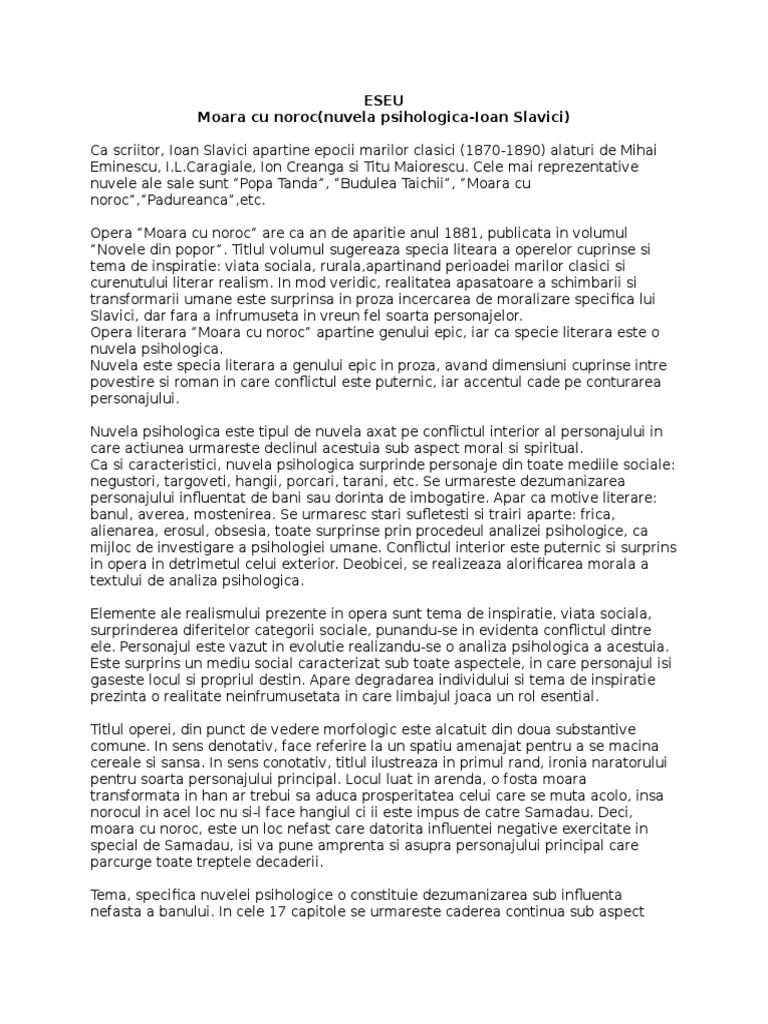 Moara Cu Noroc Introducere Eseu Bacalaureat