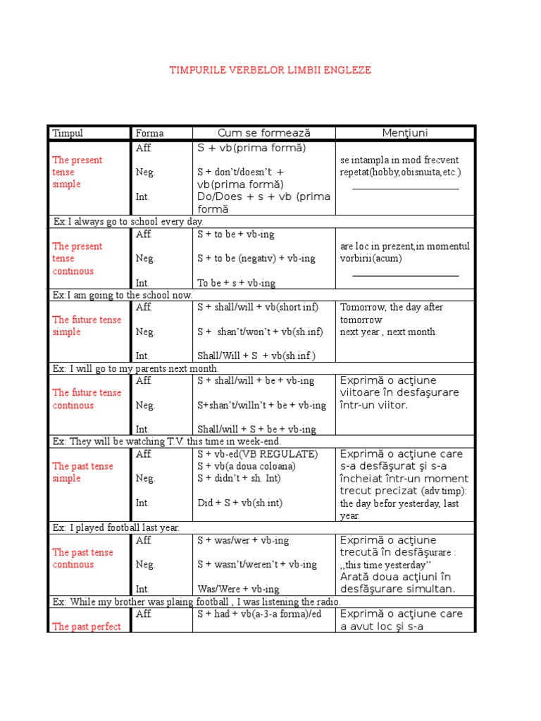Doc Verbul Clasa 5 Moduri Si Timpuri Mărioara Moti Academia Edu