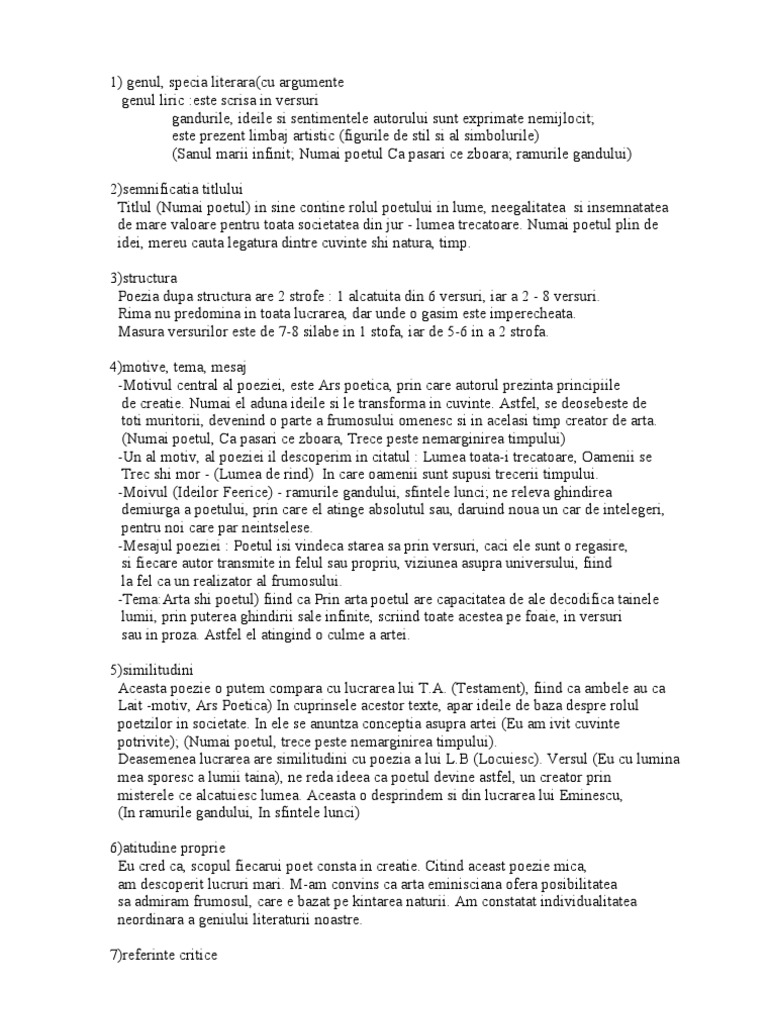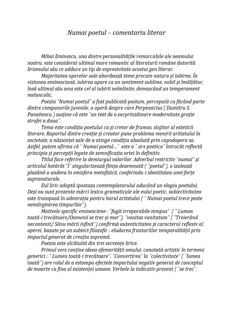 Numai Poetul Comentariu Literar