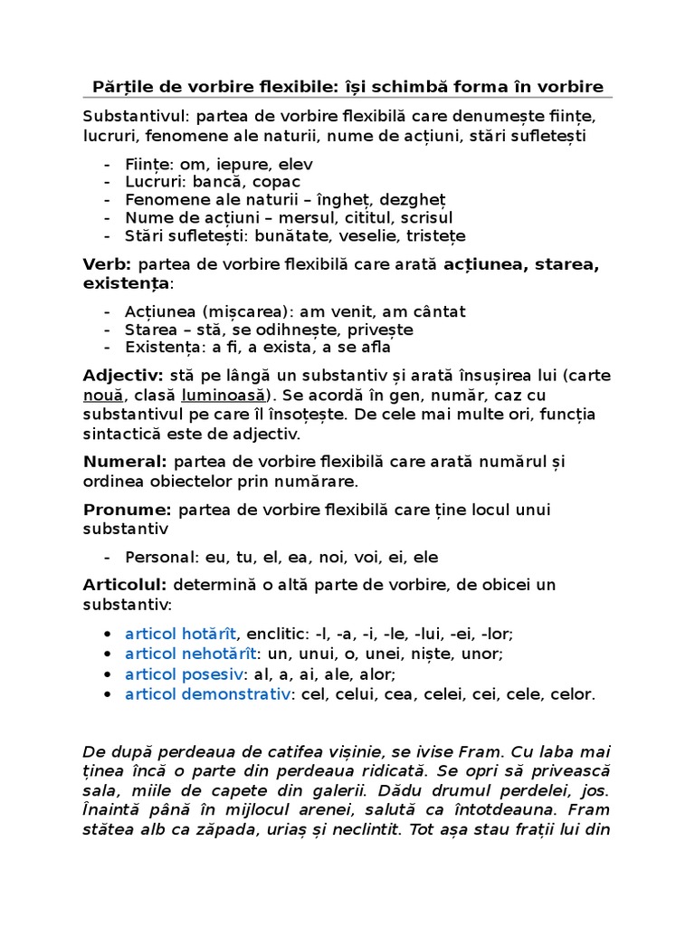 Părțile De Vorbire Flexibile Anideșcoală Ro