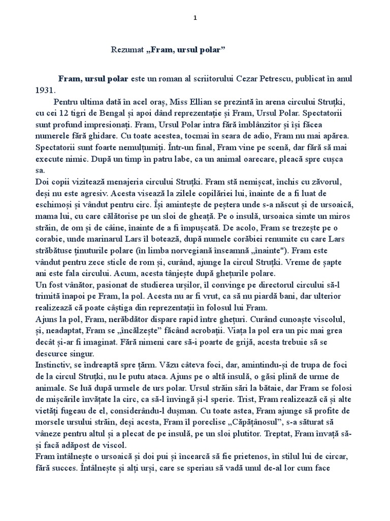 Rezumate La Carti Fram Ursul Polar De C Petrescu Wattpad