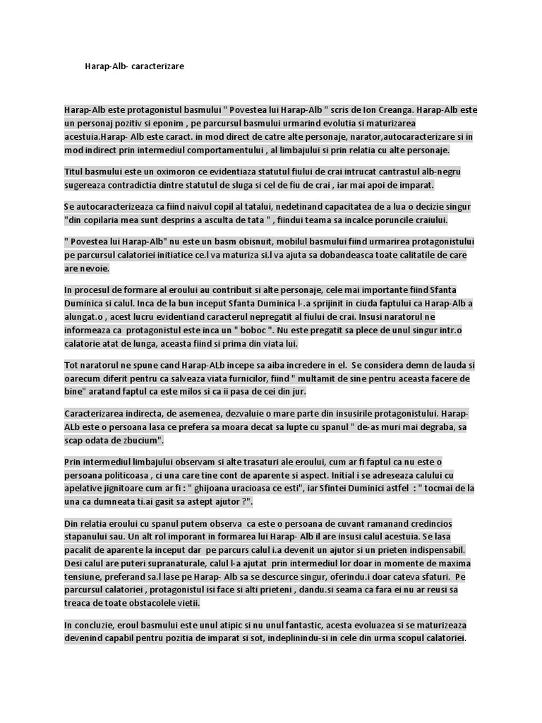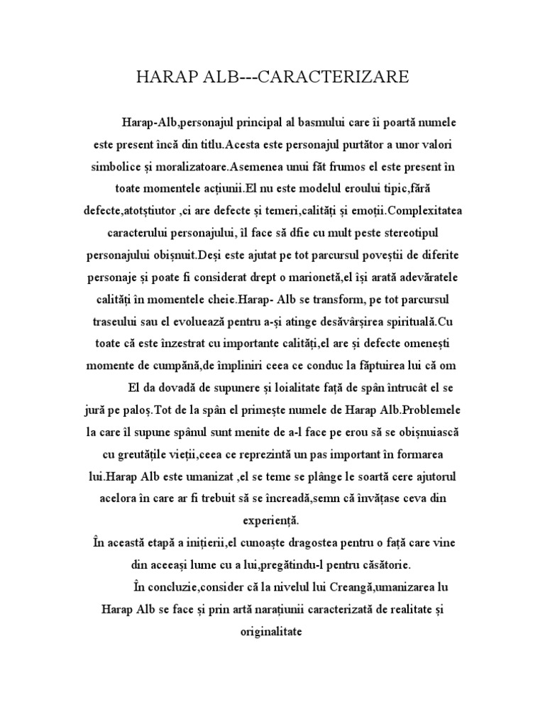Doc Caracterizare Harap Alb Ana Maria Lepădatu Academia Edu