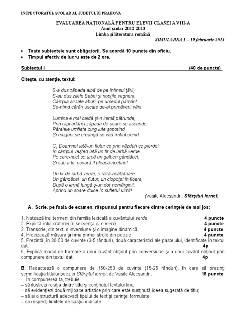 Subiectele La Evaluarea Naţională Proba De Limba Si Literatura Romană Foto