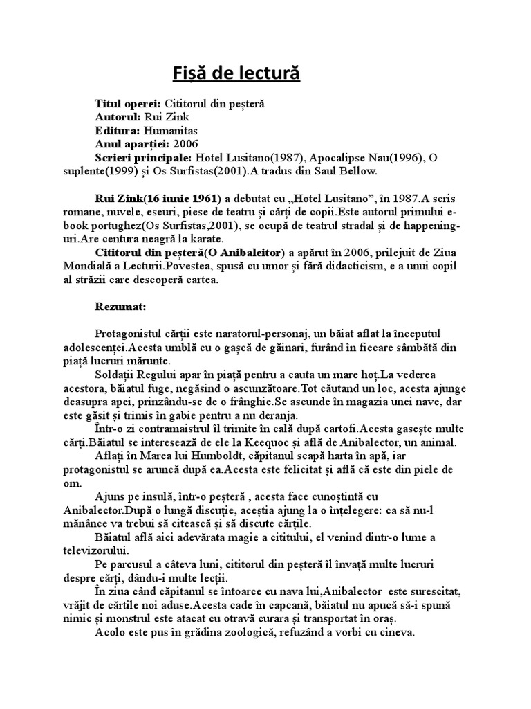 Cititorul Din Peșteră Rezumat După Rui Zink Colectionara De Carti