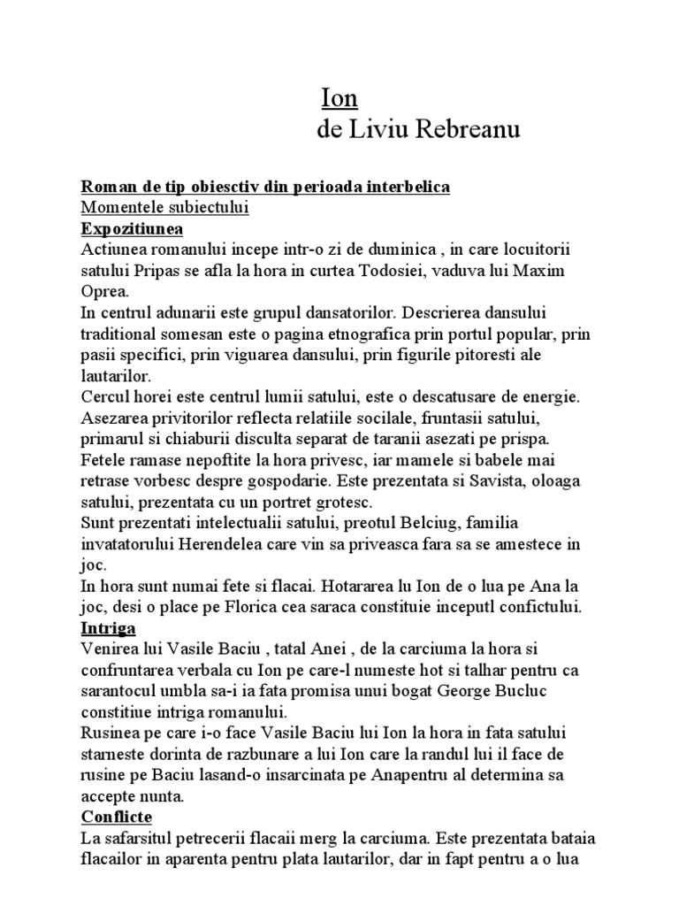 Doc Ion De Liviu Rebreanu Rezumat Violeta Stanciu Academia Edu