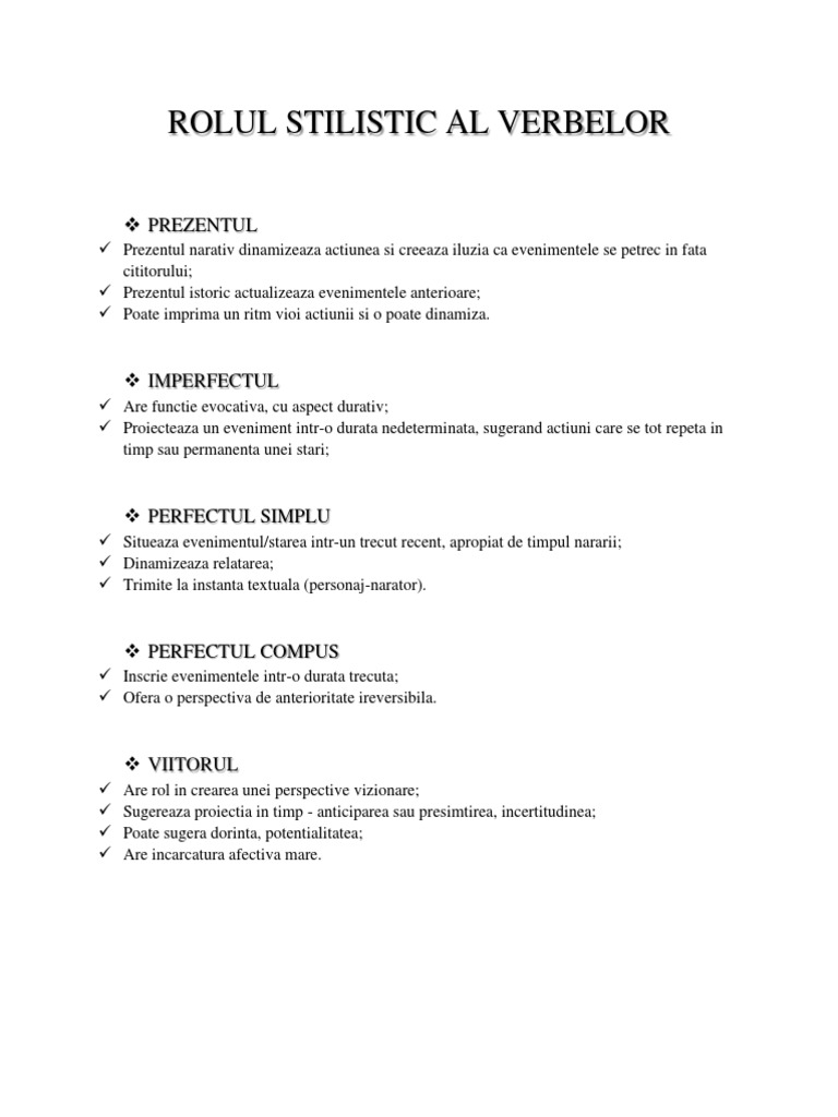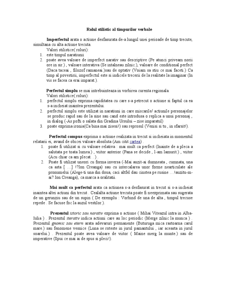 Valorile Stilistice Ale Timpurilor Verbale