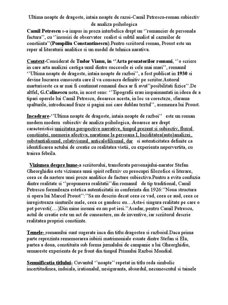 Doc Ultima Noapte De Dragoste Intaia Noapte De Razboi Camil Petrescu Popescu Andrei Academia Edu