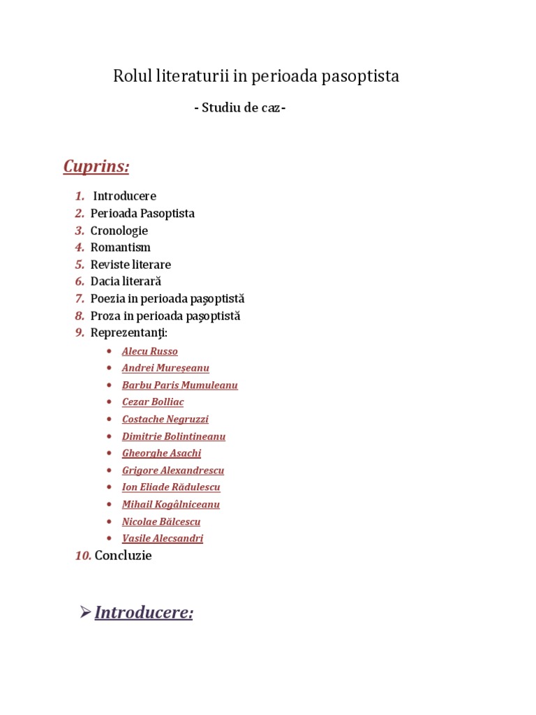 Proiect Rolul Literaturii In Perioada Pasoptista Romana 378426