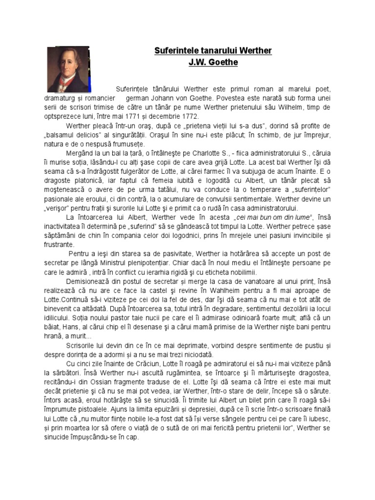 I Goethe Suferințele Tanărului Werther Un Rezumat Al Capitolelor Literatură 2020