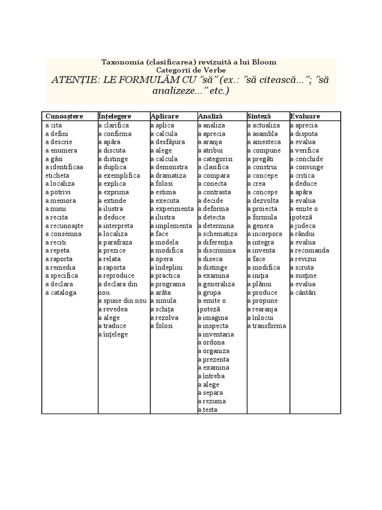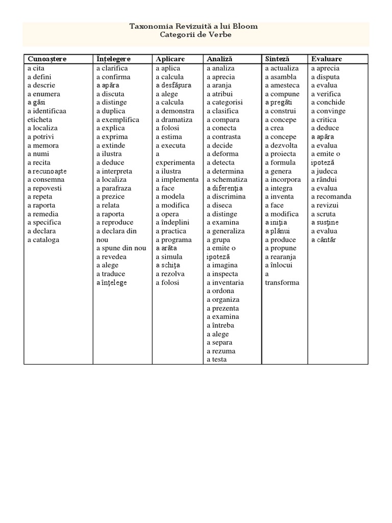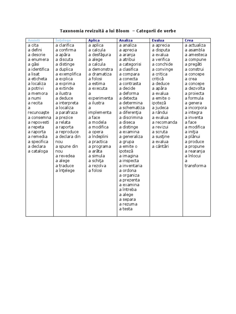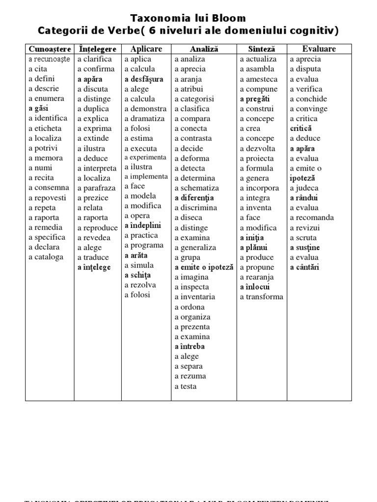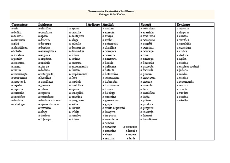 Taxonomia Lui Bloom Verbe