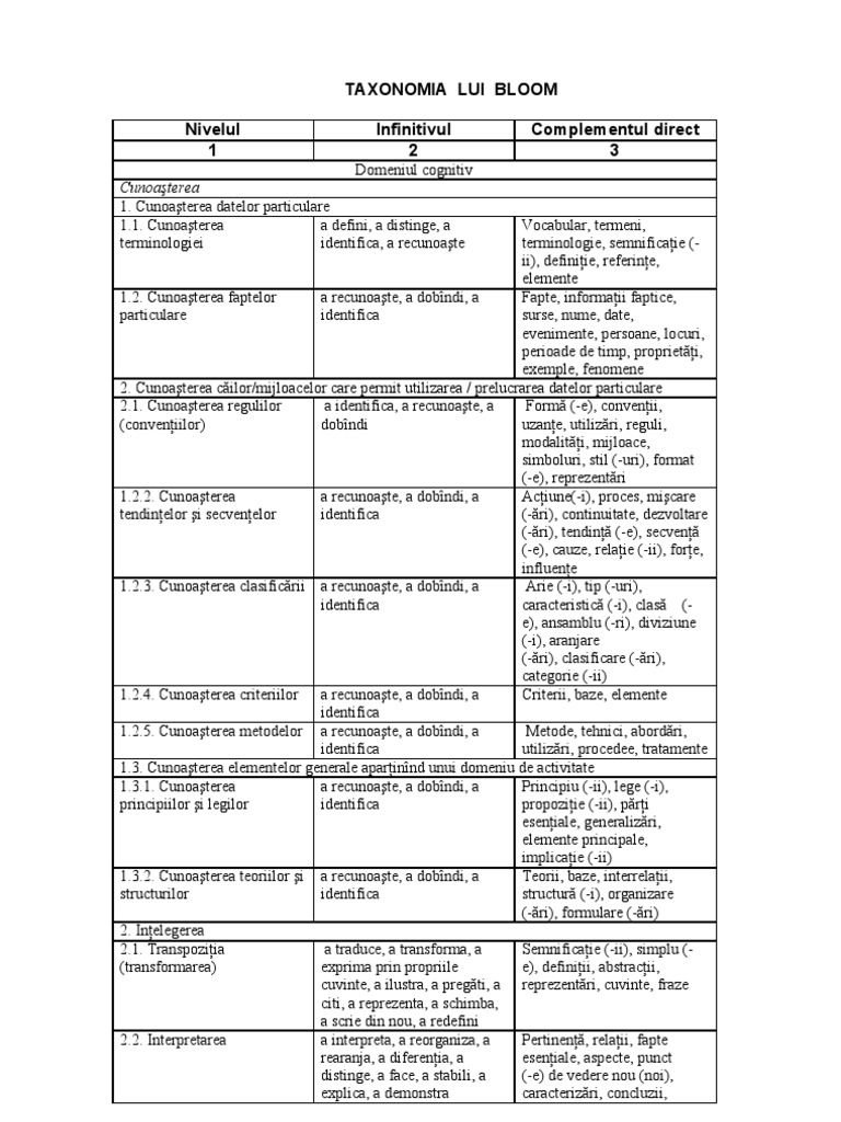 166276443 Taxonomia Lui Bloom Pentru Domeniul Cognitiv Uvt Studocu