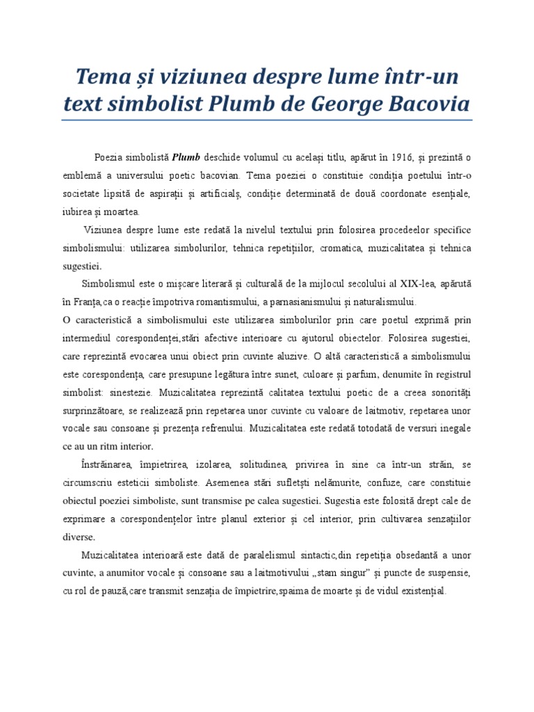 G Bacovia Plumb Temă Si Viziune