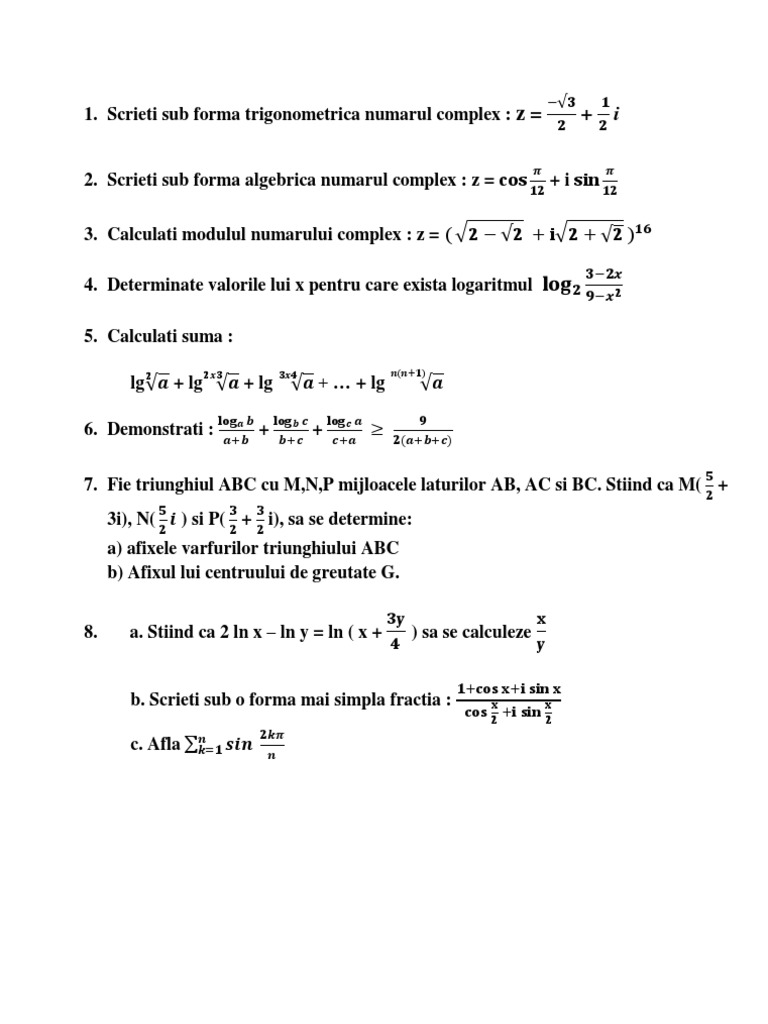 Bac Exercitii Pentru Bac Teza Matematica Sem 1 Clasa A Xii A