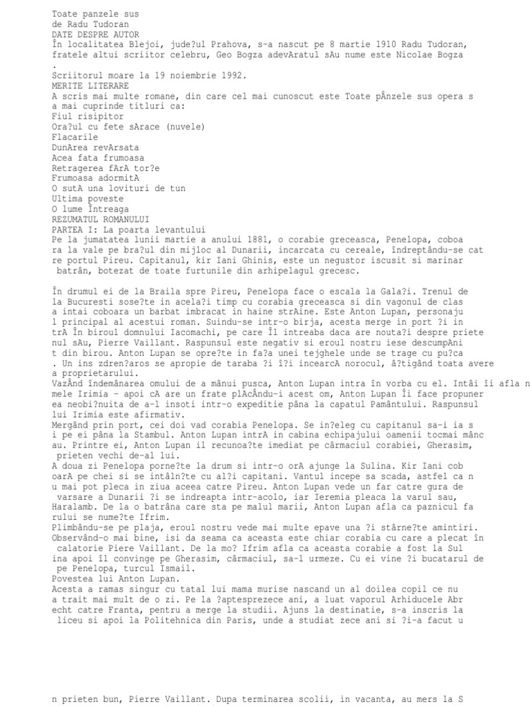 Referat Toate Panzele Sus De Radu Tudoran 338734 Graduo