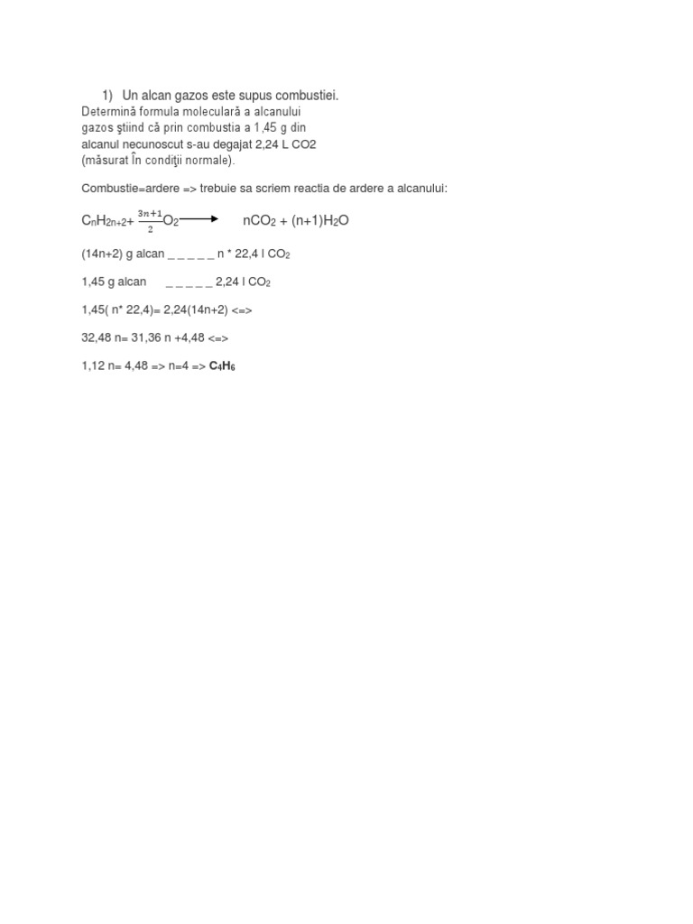 Un Alcan Gazos Este Supus Combustiei Determina Formula Moleculara Stiind Ca Prin Combustia A 1 45g Din Brainly Ro