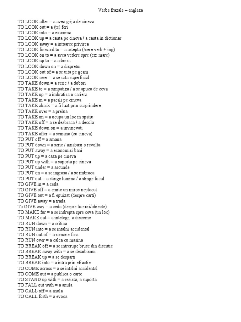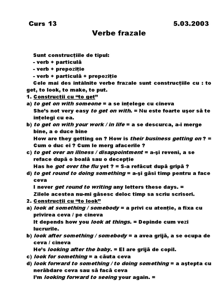 Cele mai des întâlnite verbe frazale sunt construcţiile cu verbele. N au facut nimic altceva dect sa rda. Verbul to get ne ajută să formăm o sumedenie de construcții frazale în limba engleză. Curs si tutoriale javascript 52664 articole exercitii si teste engleza incepatori 9842 lectia 363 55 blog si cugetari personale 36520 substantive exercitii si teste engleza incepatori 18501 popular pages this month.