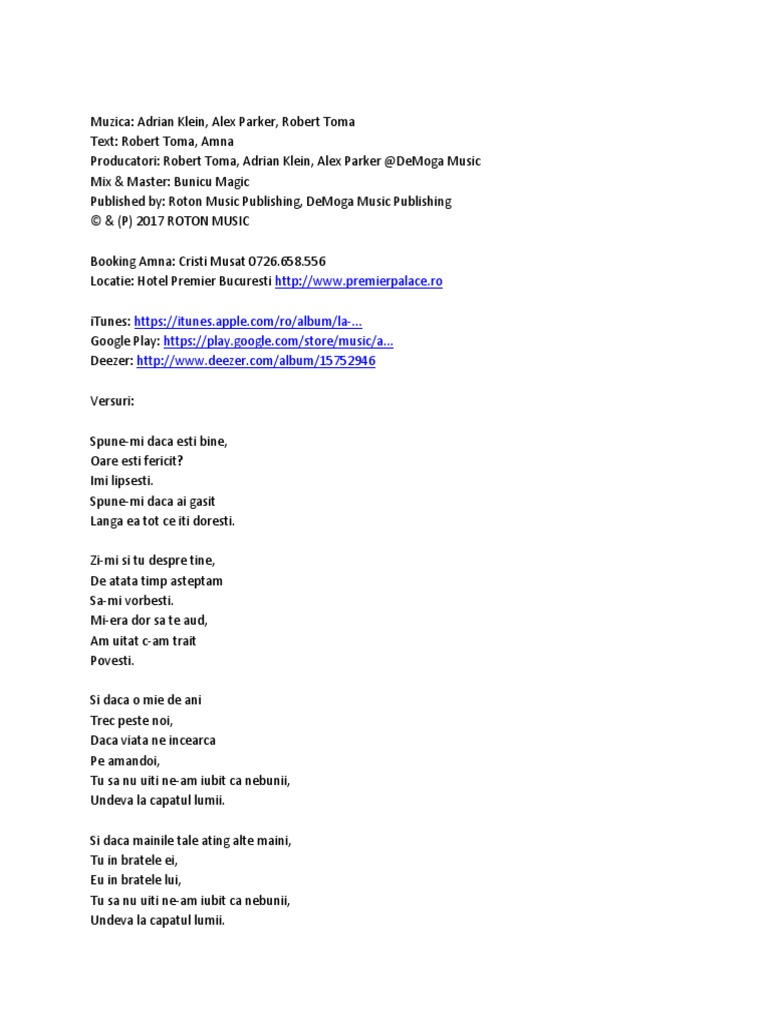Amna Feat Robert Toma La Capatul Lumii Versuri Lyrics Youtube