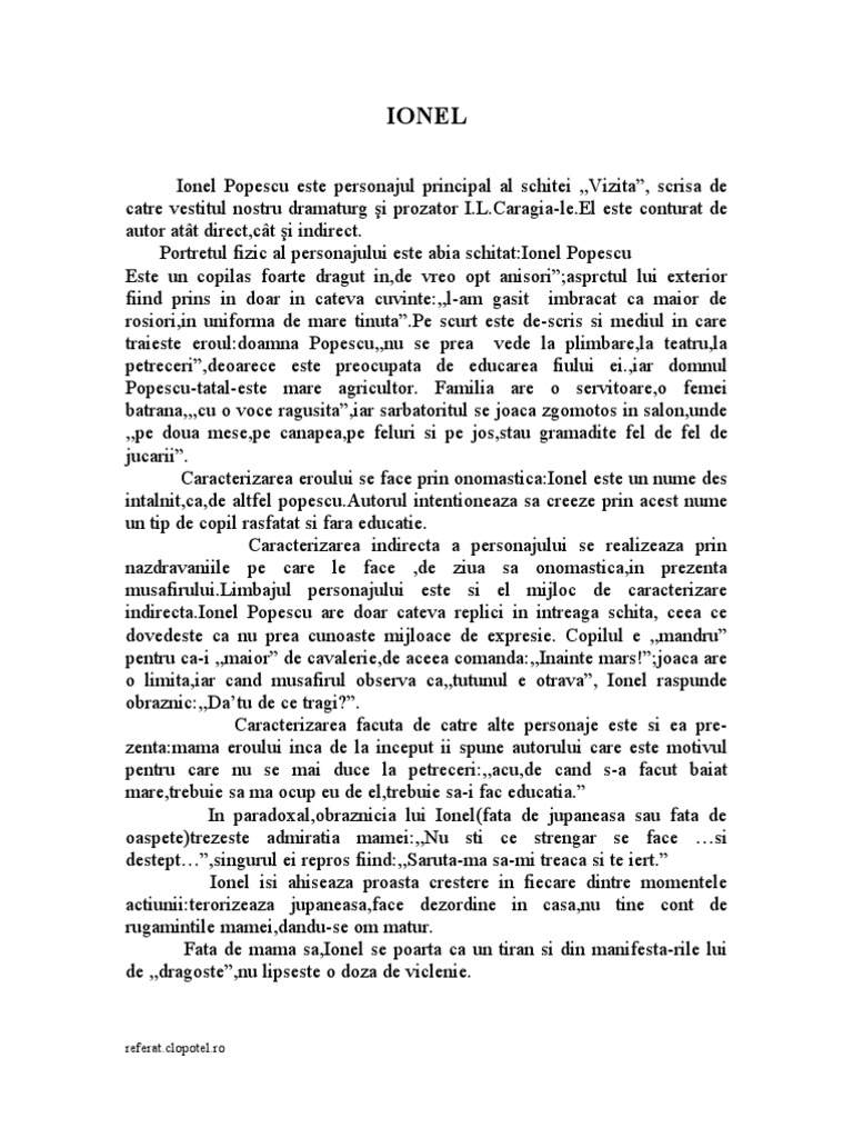 Ion Luca Caragiale Vizita Caracterizarea Lui Ionel